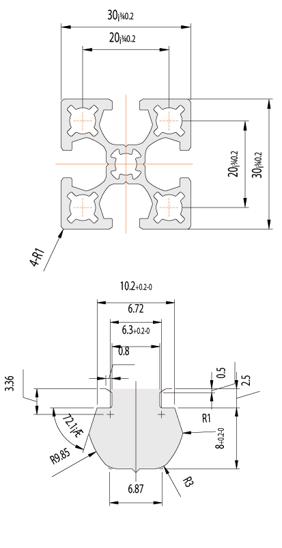 | Meterial | A6N01S-T5 or A6063S-T5 |