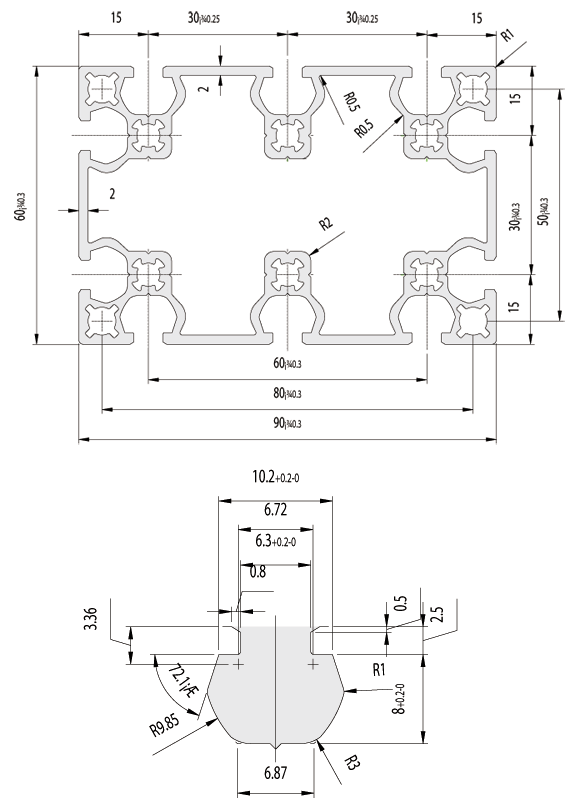 | Meterial | A6N01S-T5 or A6063S-T5 |