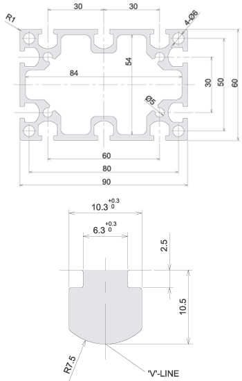 | Meterial | A6N01S-T5 or A6063S-T5 |