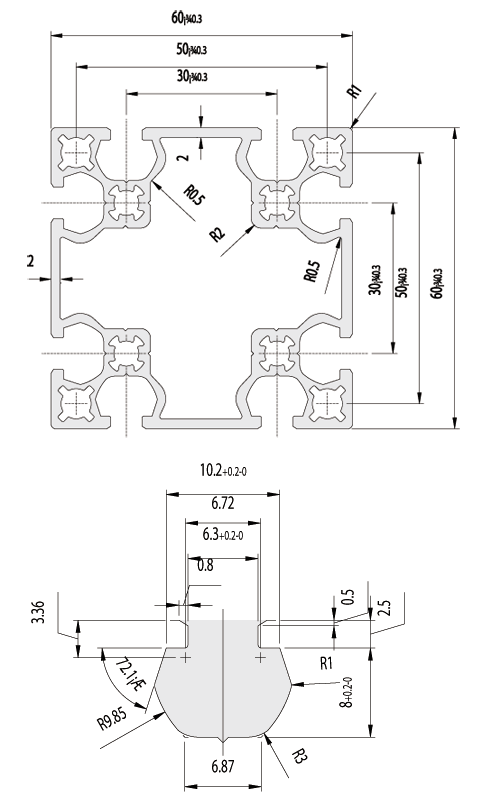 | Meterial | A6N01S-T5 or A6063S-T5 |