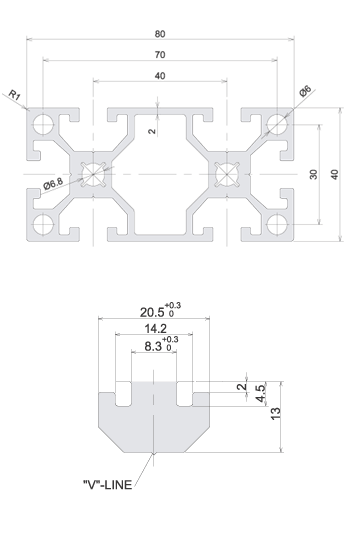 | Meterial | A6N01S-T5 or A6063S-T5 |