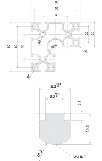 | Meterial | A6N01S-T5 or A6063S-T5 |