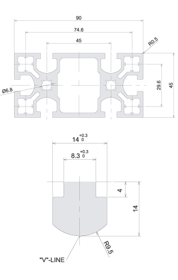 | Meterial | A6N01S-T5 or A6063S-T5 |