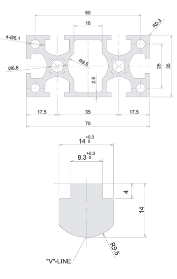 | Meterial | A6N01S-T5 or A6063S-T5 |