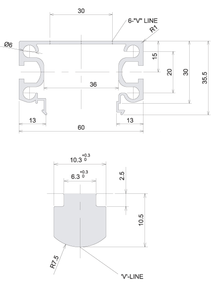 | Meterial | A6N01S-T5 or A6063S-T5 |