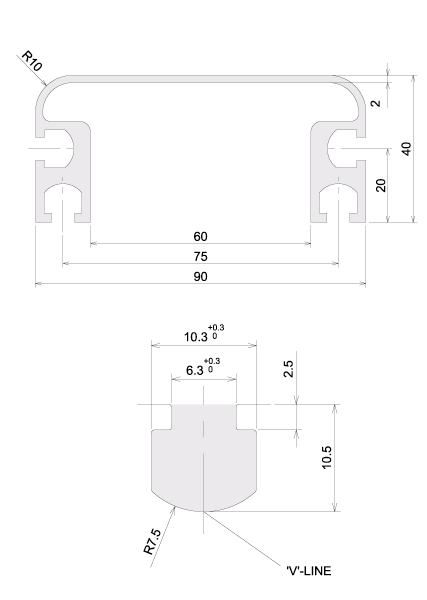 | Meterial | A6N01S-T5 or A6063S-T5 |